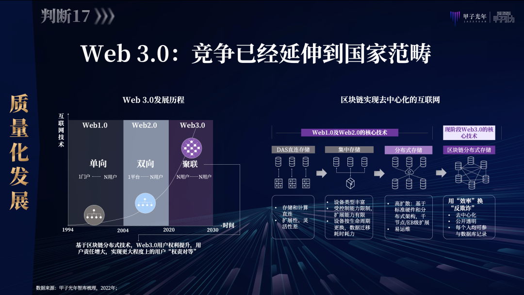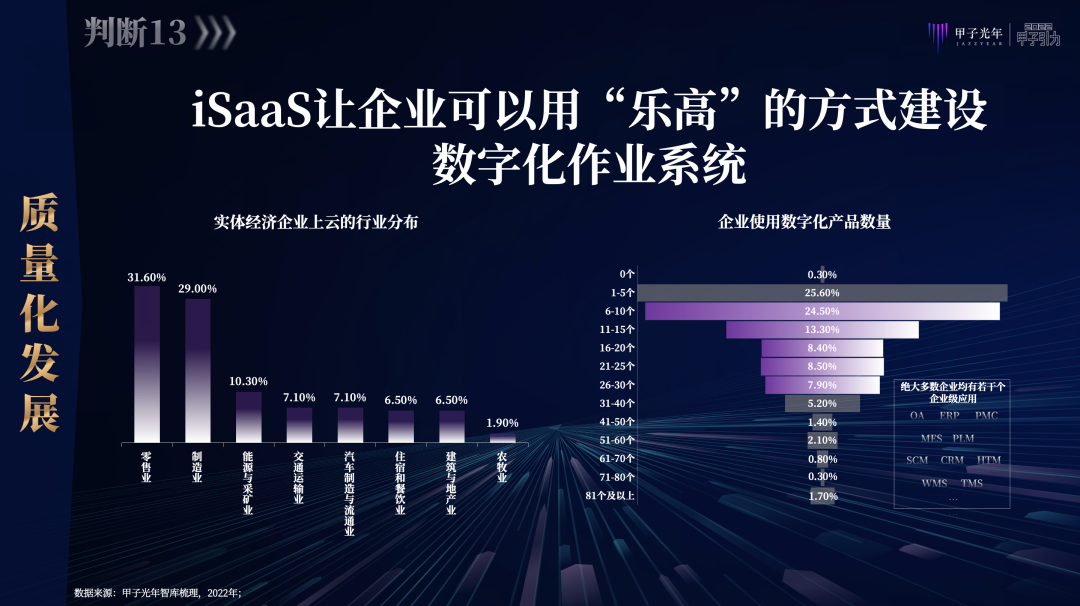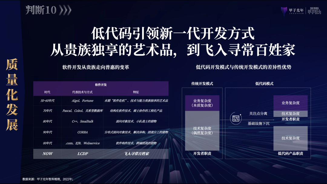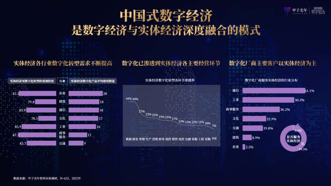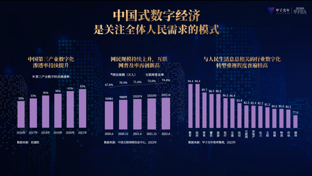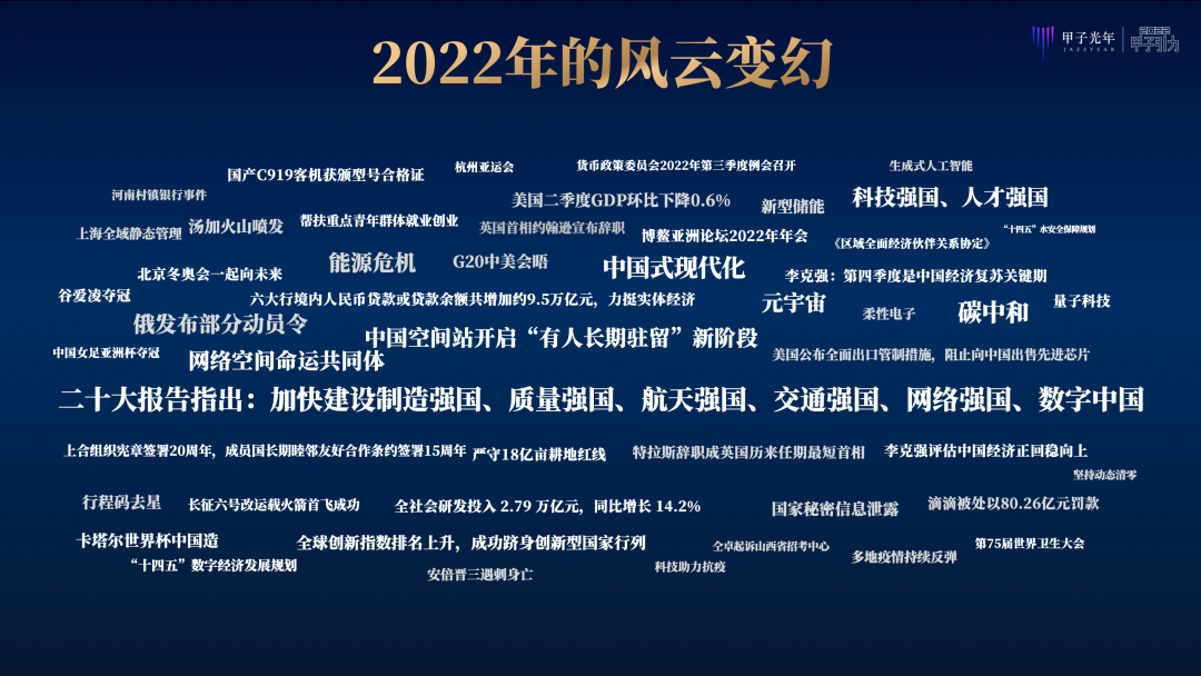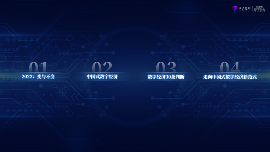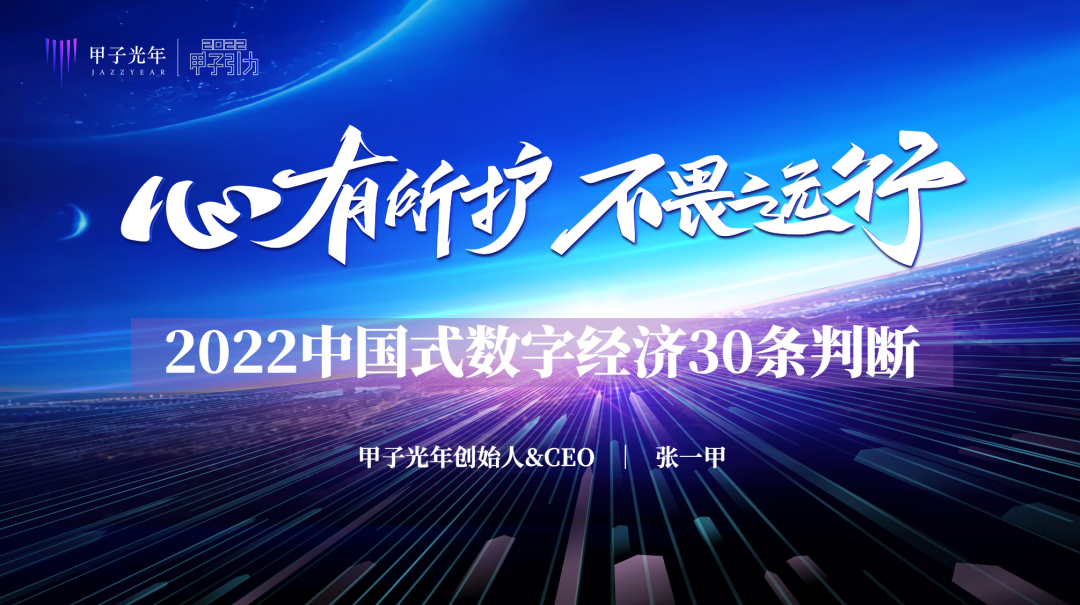 12月7日,中国科技产业智库「甲子光年」在线上举办2022「甲子引力」年终盛典大会。甲子光年创始人兼CEO张一甲重磅发布主题报告:《2022中国式数字经济30条判断》。以下为报告详细内容。