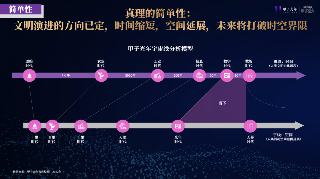 (1)真理的简单性:文明演进的方向已定,时间缩短,空间延展,未来将打破时空界限
