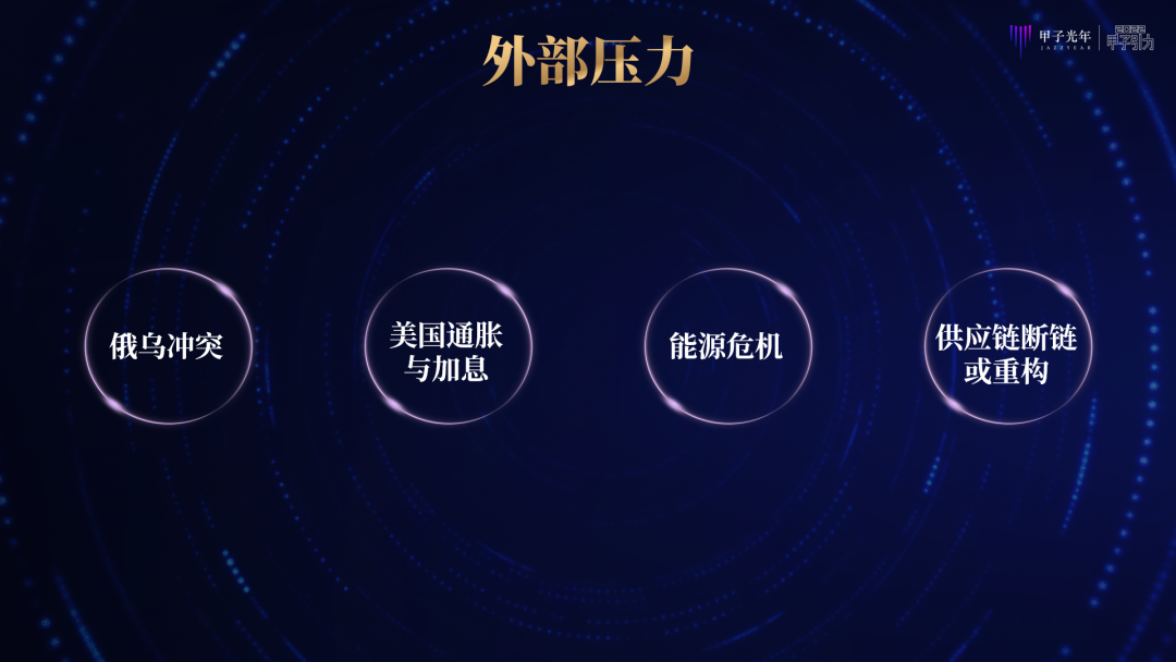 2022年发生了一些重要的环境变量。首先,是几大外部压力: