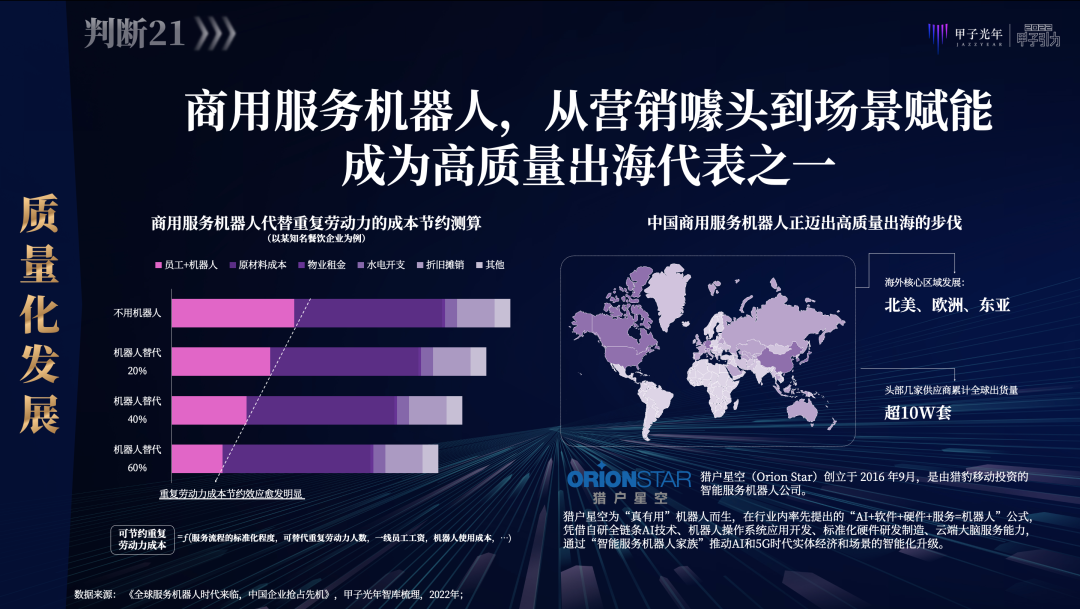 第21个判断:商用服务机器人,从营销噱头到场景赋能,成为高质量出海的代表之一。